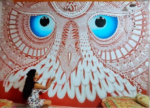 नागपूरच्या भाग्यश्री नगरातील खोडे कुटुंबाच्या घराच्या वेगवेगळ्या भिंतीवर आकर्षक आणि चटक रंगाच्या अनेक पेंटिंग्स साकारलेल्या आहेत. कुठे रौद्र रूपातील शंकर आणि नागराज. कुठे संपूर्ण भिंत व्यापलेल्या उलूकराजची (उल्लूची) भव्य पेंटिंग. कुठे विंग्स ऑफ फायर दर्शविणारे पक्ष्यांचे पंख. कुठे गवत खाताना झेब्रा. तर कुठे राष्ट्रीय पक्षी मोरची सुंदर आकृती. खोडे कुटुंबियांचा संपूर्ण घर सध्या अशाच आकर्षक पेंटिंग्सनी सजलेलं आहे. आणि या सर्व पेंटिंग खोडे कुटुंबातील लेक रेणुकाने तिच्या आई वडिलांच्या मदतीने ते सर्व कोरोना ग्रस्त असताना काढल्या आहेत.