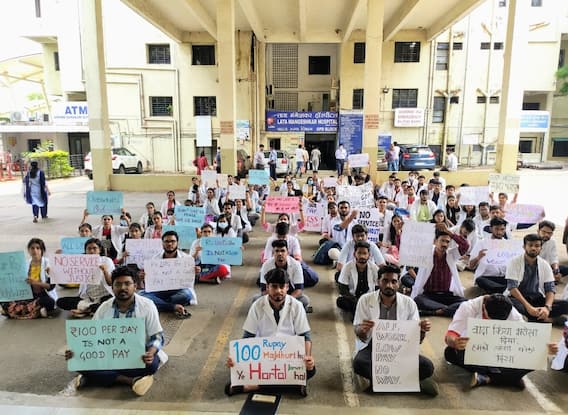 नागपूरः राज्यातील इतर वैद्यकीय महाविद्यालयांच्या तलनेत अल्प मानधन, त्यातही तीन महिन्यांपासून मानधनच मिळाले नसल्याने नागपुरातील डिगडोह परिसरातील एन.के.पी. साळवे वैद्यकीय महाविद्यालय व लता मंगेशकर रुग्णालयातील आंतरवासित डॉक्टरांनी संप पुकारला आहे. यात 150 एमबीबीएस डॉक्टरांचा समावेश असून 25 मे पासून आतापर्यंतचा सुमाने 3 महिन्यांचा माधन अद्याप मिळाला नाही आहे.