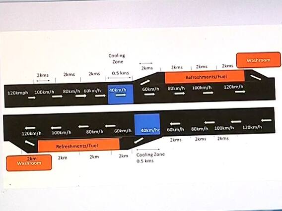 # वाहनांची गती 40 किलोमीटर प्रति तास झाल्यानंतर महामार्गावर अर्धा किलोमीटर अंतराचा पाण्याचा टप्पा राहिल.
