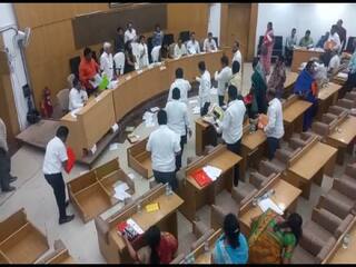Nagpur News : नागपूर जिल्हा परिषदेत नवे अध्यक्ष, उपाध्यक्ष आणि नव्या सभापतींनी कार्यभार सांभाळल्यानंतर आज पहिली सर्वसाधारण सभा वादळी ठरली. सर्व साधारण सभेच्या ठरलेल्या विषय पत्रिकेवरील विषयांवर चर्चा न करताच ते मंजूर केल्याची घोषणा जिल्हा परिषद अध्यक्ष मुक्ता कोकड्डे यांनी केल्यानंतर गोंधळाला सुरुवात झाली. यावेळी भाजपच्या संतप्त सदस्यांनी सभागृहातील साहित्याची व कागदपत्रांची फेकाफेक करत बाकांचीही तोडफोड केली. या गोंधळात मुख्य विरोधी पक्ष (BJP) असलेल्या भाजपच्या सदस्यांना काँग्रेसचे (Congress) बंडखोर नाना कंभालेंचीही साथ मिळाली, हे विशेष.