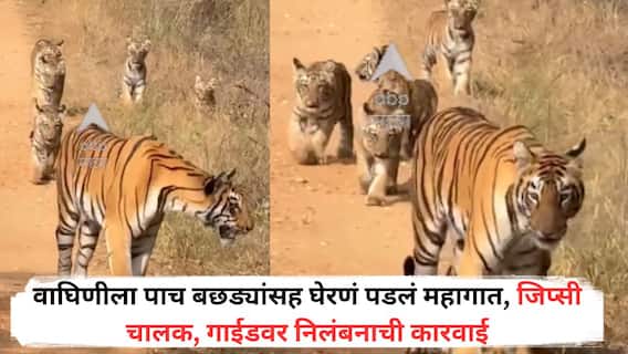 तर जिप्सी चालकांवर अडीच हजार व गाईडला 450 रुपये प्रति व्यक्ती दंड लावण्यात आला आहे. मंगळवारी या जिप्सी चालकांनी व गाईडनी गोठणगाव तलावाजवळ वाघीण व तिच्या 5 बछड्यांसह जात असताना रस्त्यावर बराच वेळ घेरून ठेवलं होतं. या घटनेचा व्हिडीओ सोशल मीडियावर मोठ्या प्रमाणावर व्हायरल झाला होता. त्यामुळं पेंच व्याघ्र प्रकल्पाचे उपसंचालक व उमरेड-पवनी-कऱ्हांडला अभयारण्याचे प्रभारी डॉ. प्रभूनाथ शुक्ला यांनी वनपरिक्षेत्र अधिकारी आरती उईके यांना चौकशी करून दोषींवर कारवाई करण्याचे आदेश दिले होते. त्यानंतर अभयारण्य प्रशासनानं ही कारवाई केली आहे.