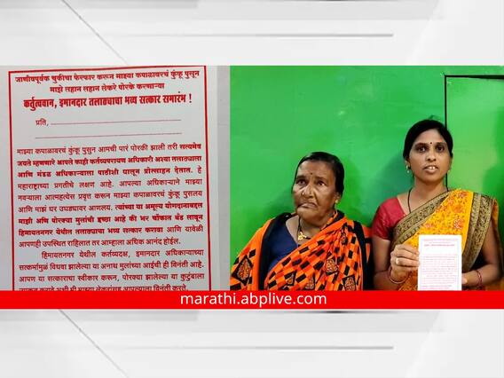 नांदेड: शासकीय अधिकारी आपल्या पदाचा दुरुपयोग करून सर्वसामान्यांना कसं लुटतात याचा प्रत्यय नांदेड जिल्ह्यातील हिमायतनगरमध्ये आला आहे. आपल्या पदाचा दुरुपयोग करून तलाठ्याने (Talathi of Himayatnagar) चुकीचा फेरफार तयार केला. ही बाब उघडकीस आल्यानंतर एका शेतकरी महिलेने तलाठ्याचा सत्कार करण्यासाठी चक्क सत्कार पत्रिका छापली. जाणीवपूर्वक चुकीचा फेरफार तयार करून माझ्या कपळावरचं कुंकू पुसून माझ्या लहान लेकरांना पोरके करणाऱ्या कर्तृत्वान इनामदार तलाठ्याचा भव्य सत्कार, अशा आशयाची पत्रिका पीडित महिलेने छापली. ही पत्रिका आता सोशल मीडियावर चांगलीच व्हायरल झाली आहे.