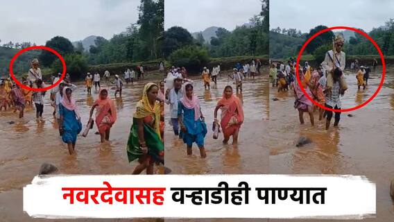 नंदुरबार जिल्ह्यातील सातपुड्याचा दुर्गम भागात रस्ते आणि अनेक सुविधांचा आजही अभाव आहे. अक्कलकुवा तालुक्यातील वहेगी गावातून जाणाऱ्या बारीपाडा गावाला जाणारा मार्ग देवनदीच्या मधून जातो. या ठिकाणाहून जाणाऱ्या नदीवर पूल नसल्याने नागरिकांना जीव मुठीत धरून प्रवास करावा लागत आहे. गावात असलेल्या एका लग्न कार्यासाठी येणाऱ्या वऱ्हाडी मंडळीना चक्क नवरदेवाला खांद्यावर घेऊन प्रवास करावा लागला. नवरदेवासह वऱ्हाडी आणि पै पाहुण्याची अशी झालेली आबाळ, सोशल मीडियावर व्हायरल झाली आहे. नवरदेव खांद्यावर आणि वऱ्हाडी पाण्यात हे चित्र व्हिडिओत कैद झालं असून आतातरी जिल्हा प्रशासन आणि राज्य सरकारला जाग येईल का, येथील नागरिकांच्या समस्या लक्षात घेऊन मार्ग सुकर होईल का, असा सवाल यानिमित्ताने विचारला जात आहे.