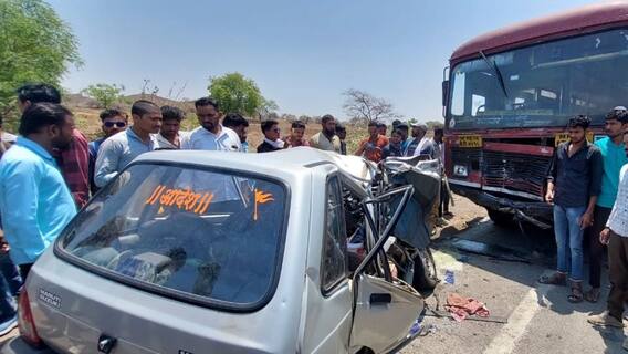 नाशिक : नांदगाव - छत्रपती संभाजीनगर रस्त्यावर भीषण अपघाताची (Accident) घटना घडली आहे. बस आणि मारुती कारचा अपघात (Bus-Maruti Car Accident) झाला असून यात मारुती कारमधील तीन जणांचा जागीच मृत्यू झाला आहे. तर दोन वर्षांचे बालक गंभीर झाले आहे.