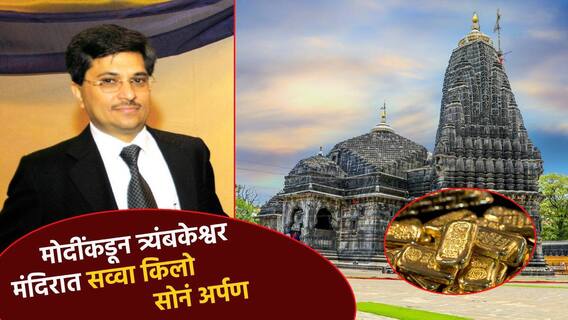 मनोज मोदी यांनी भेट दिल्यानंतर म्हटल्याप्रमाणे त्र्यंबकेश्वर देवस्थानला सव्वा किलोचे सोने दान केले आहे. रिलायन्स इंडस्ट्रीजचे व्हाईस चेअरमन मनोज मोदी मागील महिन्यात दर्शनासाठी आले होते, त्यावेळी देवस्थानच्या विश्वस्तांनी 200 वर्षांपूर्वीचा सुवर्ण मुकुट नव्याने बनविण्याचा संकल्प त्यांना सांगितला होता. देशभरातील भक्तांच्या सुवर्ण दानातून साडेआठ किलोचा सुवर्ण मुकुट बनविला जाणार आहे, त्यापैकी पाच किलोहून अधिक सोने देवस्थानला दानाच्या स्वरूपात प्राप्त झाले आहेत. आता, उर्वरित सोने अर्पण करण्याचे मनोज मोदी यांनी म्हटले होते. त्यानुसार, मोदी यांचे सहकारी हितेश यांनी आज सपत्नीक येऊन सव्वा किलो सोने म्हणजेच 125 तोळे सोने, ज्याची बाजार भावाप्रमाणे किंमत अंदाजे 1 कोटी रुपये आहे, तेवढं सोनं अर्पण करण्यात आलं आहे.