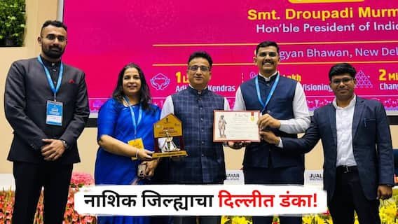 Nashik News: ‘आदीकर्मयोगी अभियान’ अंतर्गत राज्यातील उत्कृष्ट कामगिरीबद्दल नाशिक (Nashik) जिल्ह्याला दि. 17 ऑक्टोबर रोजी गौरविण्यात आले. हा सन्मान महामहिम राष्ट्रपती द्रौपदी मुर्मु (President Draupadi Murmu) यांच्या प्रमुख उपस्थितीत नवी दिल्ली (New Delhi) येथील विज्ञान भवन येथे प्रदान करण्यात आला. आदिवासी विकास आयुक्त लीना बनसोड, तसेच तत्कालीन जिल्हाधिकारी जलज शर्मा व जिल्हाधिकारी आयुष प्रसाद यांच्या प्रभावी मार्गदर्शनाखाली नाशिक जिल्ह्याने या अभियानात उल्लेखनीय यश संपादन केले असून, या सामूहिक प्रयत्नांना राष्ट्रीय स्तरावर गौरव प्राप्त झाला आहे.