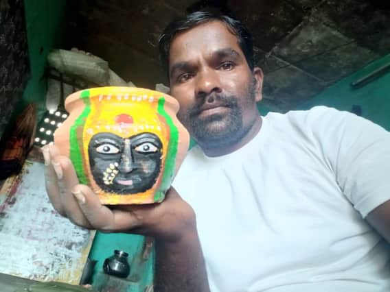 शारदीय नवरात्रौत्सवाला आजपासून सर्वत्र उत्साहात आनंदात सुरुवात होत आहे..नवरात्रोत्सवाच्या निमित्ताने घटस्थापनेसाठी लागणाऱ्या मडक्यावर नाशिकच्या मालेगाव येथील चित्रकार संदीप आव्हाड यांनी तुळजाभवानी मातेचे आकर्षक असे चित्र रेखाटले आहे..सण, उत्सव असले की चित्रकार संदीप आव्हाड हे विविध सण उत्सवाचा विषय हाती घेवून आपल्या कलेने जिवंत देखावे रेखाटत असतात..अतिशय आकर्षक असे तुळजाभवानी मातेचे चित्र आज घटस्थापनेच्या निमित्ताने मडक्यावर त्यांनी रेखाटले आहे.