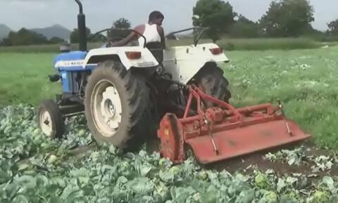 कोबीला भाव न मिळाल्याने नाशिक जिल्ह्यातील सटाण्यातील प्रगतशील शेतकरी अरविंद सोनवणे यांनी सात एकर शेतीवर नांगर फिरवला.