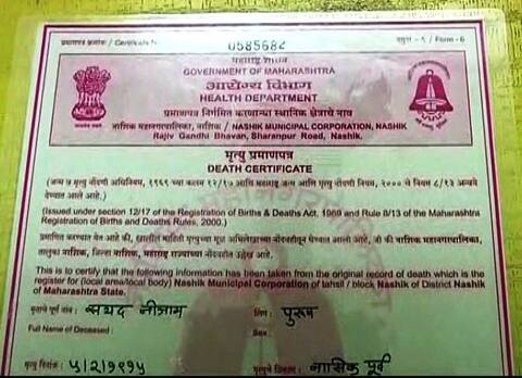 नाशिक : एखाद्याच्या मृत्यूचा दाखला मिळवण्यासाठी जास्तीत जास्त किती वर्ष कालावधी जावा लागतो, एक वर्ष, दोन वर्ष... दहा वर्ष? नाही तब्बल 103 वर्ष. नाशिकचे महापालिका आयुक्त तुकाराम मुंढे यांच्या हस्तक्षेपानंतर 103 वर्षांपूर्वीचं प्रकरण निकाली निघालं. जुने नाशिकमध्ये राहणाऱ्या निजामुद्दीन नजरअली पिरजादा यांचा 5 फेब्रुवारी 1915 मध्ये मृत्यू झाला. त्याकाळी ब्रिटीश राजवट होती. पिरजादे यांचा दाखला मोडी लिपीत लिहिण्यात आला होता. त्यानंतर देश स्वतंत्र झाला, नाशिक नगरपालिकेची महापालिका झाली. मात्र मृत्यूचा दाखला मिळत नव्हता. ब्रिटीशकालीन दाखले मोडी लिपीत असल्याने, कधी मोडी लिपी वाचक नाही तर कधी अधिकारी नाही अशी वेगवेगळी कारण सांगून अर्जदाराला माघारी पाठवलं जात होतं. अखेर मनपा आयुक्त तुकाराम मुंढे यांच्याकडे कैफियत मांडल्यानंतर, 103 वर्षांनी निजामुद्दीन पिरजादा यांच्या मृत्यूचा दाखला मिळाला. निजामुद्दीन नजरअली पिरजादा हे स्वातंत्र्य सैनिक होते. स्वातंत्र्य चळवळीत त्यांचा सहभाग असल्याचा दावा कुटुंबीयांनी केला आहे. त्यांच्या नावाने ताम्रपत्र सरकारकडून मिळावं, अशी कुटुंबियांची अपेक्षा आहे. नाशिक महापालिकेच्या रेकॉर्ड रुममध्ये 1879 पासूनच्या नोंदी आहेत. 1897 ते 1934-35 पर्यंतच्या हजारो जन्म-मृत्यूच्या नोंदी मोडी लिपीत आहेत. त्याचं वाचन करण्यासाठी स्वतंत्र अधिकाऱ्याची नेमणूक करण्यात आली आहे. मध्यंतरी ही जागा रिक्त असल्याने दाखल्यांची काम रखडली होती. मोडी लिपीचं वाचन करुन त्याचं मराठीत भाषांतर केलं जातं. मृत्यूचे कारण, वय, पुरुष अथवा स्त्री अशी सर्व नोंद त्या काळापासून केली जात आहे. शेकडो वर्षापूर्वीचे अनेक रेकॉर्ड जीर्ण होत चालले आहेत. त्यामुळे या सर्व दस्तऐवजांचं संगणकीकरण करावं, अशी मागणी आता जोर धरत आहे. सरकारी काम आणि सहा महिने थांब अशी म्हण गेल्या काही वर्षात प्रचलित झाली. मात्र मनपाचा कारभार त्याहीपलिकडे जाऊन वर्षानुवर्षे तक्रारदाराला खेटा मारायला लावणारा आहे. त्यात सुधारणा होण्याची आणि जनतेचे आपण सेवक आहोत ही भावना दृढ होण्याची नितांत आवश्यक आहे.