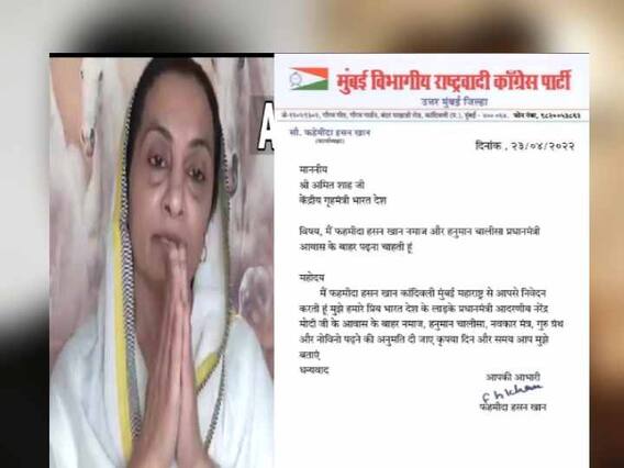 केंद्रीय गृहमंत्री अमित शाह यांना लिहिलेल्या या पत्रात फहेमीदा हसन म्हणतात, मला माझ्या प्रिय देशाच्या लाडक्या पंतप्रधान नरेंद्र मोदी यांच्या निवासस्थानासमोर नमाज, हनुमान चालिसा, दुर्गा चालिसा, नवकार मंत्र, गुरु ग्रंथ आणि नोविनो यांचे पठण करण्याची परवानगी देण्यात यावी. यासाठीचा दिवस आणि वेळ देखील आपण सुचवावा.’ फहेमीदा हसन या राष्ट्रवादी पक्षाच्या कांदिवली विभागाच्या कार्याध्यक्ष आहेत. त्यांनी थेट अमित शाह यांना लिहिलेले हे पत्र चर्चेत आले आहे.