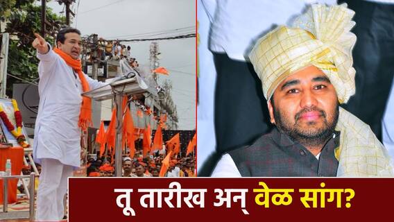 मुंबई : नाशिकच्या सरला बेटाचे महंत रामगिरी महाराजांच्या समर्थनार्थ भाजप आमदार नितेश राणे यांनी विविध जिल्ह्यात मोर्चे काढून भाषण केले. यावेळी, भाषण करताना त्यांनी धार्मिक तेढ निर्माण केल्याचा आरोप त्यांच्यावर केला जात आहे. विशेष म्हणजे मी हिंदूंचा गब्बर असून मी चालायला लागलो तर लोकं दारं बंद करतात, असे म्हणत अप्रत्यक्षपणे त्यांनी एका विशिष्ट समाजाला लक्ष्य केल्याचं दिसून आलं. विशेष म्हणजे हिरवा साप म्हणत ते मुस्लिम समाजाला लक्ष्य करत असल्याचेही पाहायला मिळते.सत्ताधारी पक्षाचे आमदार असल्याने आणि गृहमंत्र्यांचे निकटवर्तीय असल्याने त्यांच्यावर कारवाई होत नाही, असा आरोप विरोधकांकडून केला जातोय. आता, भाजपच्याच मुस्लीम नेत्यांनी नितेश राणेंवर हल्लाबोल केलाय. तसेच, तू वेळ आणि तारीख सांग, मी इथेच आहे, अशा शब्दात इशारादेखील दिला आहे.