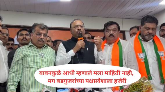 Chandrashekhar Bawankule on Sudhakar Badgujar, Mumbai : उद्धव ठाकरेंच्या शिवसेनेतून निलंबित करण्यात आलेले नाशकातील नेते सुधाकर बडगुजर (Sudhakar Badgujar) यांनी आज (दि.17) भारतीय जनता पक्षात प्रवेश केलाय. मात्र, त्यांच्या प्रवेशापूर्वी भाजप प्रदेशाध्यक्ष चंद्रशेखर बावनकुळे (Chandrashekhar Bawankule) यांच्या वक्तव्याने सर्वांच्या भूवया उंचावल्या होत्या. कारण चंद्रशेखर बावनकुळे यांनी सुधाकर बडगुजर यांच्या पक्षप्रवेशाबद्दल काहीही माहिती नसल्याचं नमूद केलं होतं. मात्र, दुपारी बडगुजर यांच्या पक्षप्रवेशावेळी खुद्द चंद्रशेखर बावनकुळे उपस्थित असल्याचे पाहायला मिळाले. सुधाकर बडगुजर यांच्या पक्ष प्रवेशासाठी मंत्री गिरीश महाजन यांनी मध्यस्थी केली आहे.