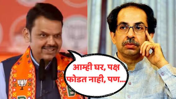 आम्ही घर फोडत नाही आणि पक्षही फोडत नाही, फक्त संधी मिळाली तर ती सोडत नाही. जे सोबत येवू इच्छितात त्यांना सोबत घेतो, असं म्हणत फडणवीसांनी उद्धव ठाकरेंवर जोरदार निशाणा साधला आहे.