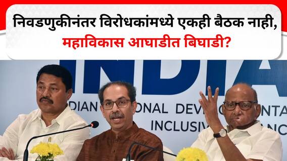 महाविकास आघाडीच्या जागा वाटपाचा मुद्दा असू द्यात किंवा मग मुख्यमंत्री पदाचा चेहरा जाहीर करण्याचा विषय असू द्या... विधानसभेवेळी बैठकांमध्ये कधीच एकमत झालं नाही... आणि त्यामुळेच महाविकास आघाडीमध्ये समन्वयाचा अभाव झाल्याचं महाविकास आघाडीतील नेत्यांनीच मान्य केलं...मागील दीड महिन्यात महाविकास आघाडीची एकही बैठक राज्यस्तरावर झाली नाही... प्रत्येक पक्ष आपलं वैयक्तिक चिंतन आणि बैठका घेत आहे.... त्यात ठाकरेंची शिवसेना आगामी महापालिका निवडणुकांमध्ये स्वबळाचा नारा देत आहे... त्यामुळे महाविकास आघाडीची एकजूट आणि समन्वय निकालानंतर कुठे दिसत नसल्याचं सुरू असलेल्या घडामोडींवर दिसत आहे... ज्यांनी महाविकास आघाडीची मूठ बांधली ... वज्रमुठ घट्ट केली ... ते राष्ट्रवादी काँग्रेसचे अध्यक्ष शरद पवार सुद्धा नाराज असल्याची माहिती आहे.