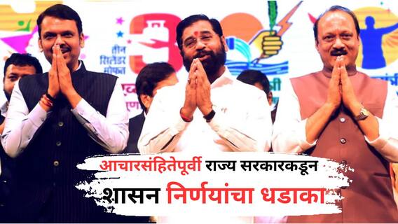 Maharashtra Vidhan Sabha Election : मुंबई : राज्यात (Maharashtra News) अद्याप आगामी विधानसभा निवडणुकांचं (Vidhan Sabha Elections 2024) बिगुल वाजलं नाही. तरीसुद्धा सर्व राजकीय पक्षांनी विधानसभेचं मैदान मारण्यासाठी आपापल्या परीनं प्रयत्न सुरू केले आहेत. यंदाच्या निवडणुकीत राज्यात महायुती (Mahayuti) आणि महाविकास आघाडी (Maha Vikas Aaghadi) अशी लढत पाहायला मिळणार आहे. दरम्यान, अशातच निवडणुकीची आचारसंहिता लागण्याआधी राज्य सरकारनं निर्णयांचा धडाका लावला आहे. मंत्रिमंडळ बैठकीत सरकारनं एकापाठोपाठ एक असे अनेक महत्त्वाचे निर्णय घेतले आहेत.