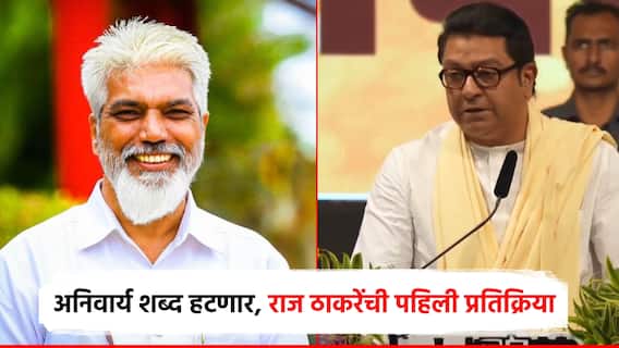 सरकारने अनिवार्य शब्द हटविण्याच्या निर्णय घेतल्यानंतर राज ठाकरे यांनी यावर प्रतिक्रिया दिली. ''सरकारने आधीच विचार करुन निर्णय घेतला असता तर आज माघार घेण्याची वेळ आली नसती. पण, सरकारने हा निर्णय मागे घेतला यासाठी सरकारचे धन्यवाद,'' अशी प्रतिक्रिया मनसे अध्यक्ष राज ठाकरे यांनी दिली. तसेच, महाराष्ट्रात दुसरी-तिसरी कोणती भाषा चालणार नाही. महाराष्ट्रात फक्त मराठी चालणार, असेही राज ठाकरे यांनी म्हटलं. दरम्यान, राज्य शालेय अभ्यासक्रम आराखडा २०२४ नुसार महाराष्ट्रात पहिलीपासूनच हिंदी ही भाषा अनिवार्य करण्यात आली आहे. मी स्वच्छ शब्दांत सांगतो की ही सक्ती महाराष्ट्र नवनिर्माण सेना खपवून घेणार नाही, असा इशारा राज ठाकरेंनी दिला होता.