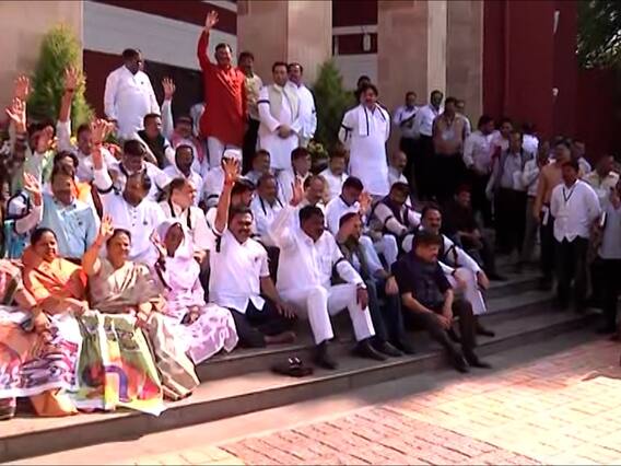Nagpur Winter Session : कर्नाटक (Karnataka) विधानसभेत महाराष्ट्राच्या विरोधात ठराव मंजूर केल्यानंतर त्याचे पडसाद नागपूरमध्ये (Nagpur) सुरु असलेल्या हिवाळी अधिवेशनात (Nagpur Winter Session) पाहायला मिळाले. महाराष्ट्र कर्नाटक सीमावादाच्या (Maharashtra Karnataka Border Dispute) मुद्द्यावर महाविकास आघाडीचे (Maha Vikas Aghadi) आमदार कर्नाटक तसंच शिंदे सरकारच्या विरोधात चांगलेच आक्रमक झाले. विधानभवनाच्या पायर्यांवर उतरत जोरदार घोषणाबाजी केली तसंच काळ्या पट्ट्या बांधून आमदारांनी निषेध केला.