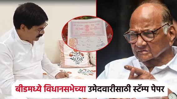 सध्या राज्यात विधानसभेचे वेध लागले असून कुठल्याही क्षणी विधानसभा जाहीर होऊ शकते. बीडच्या माजलगाव विधानसभा मतदारसंघाच्या उमेदवारीसाठी कार्यकर्त्यांनी चक्क स्टॅम्प पेपरवर निष्ठा व्यक्त करत नारायण डक यांना राष्ट्रवादी काँग्रेस शरदचंद्र पवार पक्षाकडून माजलगाव विधानसभेची उमेदवारी द्यावी, अशी मागणी शरद पवार यांच्याकडे केली आहे. तसेच, पक्षासोबत गद्दारी करणाऱ्यांना पुन्हा पक्षात घेऊन उमेदवारी देऊ नये अशीही मागणी या स्टॅम्प पेपरवर करण्यात आलेली आहे. त्यामुळे आता राष्ट्रवादी शरद पवार पक्ष नेमकं माजलगाव विधानसभा क्षेत्रामध्ये काय निर्णय घेतो, याकडे जिल्ह्याचे लक्ष असणार आहे.