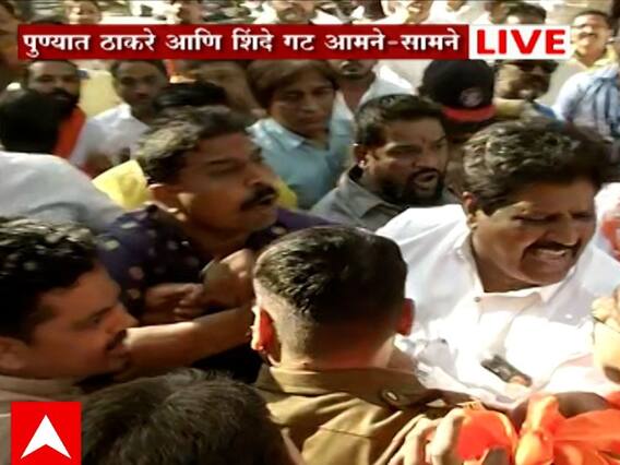 Thackeray Group Vs Shinde Group: पुण्यात (Pune) ठाकरे (Uddhav thackeray) आणि शिंंदे (Eknath Shinde) समर्थकांमध्ये तुफान राडा झाल्याची बातमी समोर येत आहे. दोन्ही गटाचे कार्यकर्ते आमने-सामने आल्याची माहिती मिळाली आहे. पुण्यातील गांजवे चौकातील पत्रकार संघासमोर हा प्रकार घडला आहे. हा सगळा हैदोस थांबवण्याचा प्रयत्न पोलिसांकडून करण्यात येत आहे.