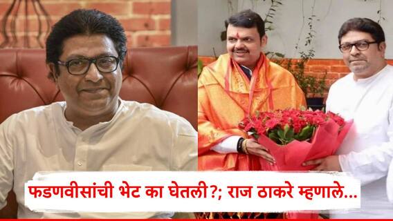 Raj Thackeray Meet Devendra Fadnavis मुंबई: मनसेप्रमुख राज ठाकरे (Raj Thackeray) यांनी आज सकाळी मुख्यमंत्री देवेंद्र फडणवीस (Devendra Fadnavis) यांची मुंबईतील वर्षा या निवासस्थानी भेट घेतली. साधारण 45 मिनिटं राज ठाकरे (Raj Thackeray) आणि देवेंद्र फडणवीसांची (Devendra Fadnavis) चर्चा झाली. देवेंद्र फडणवीसांची भेट घेतल्यानंतर राज ठाकरेंनी शिवतीर्थ या निवासस्थानी माध्यमांशी संवाद साधला. गेले काही महिने मी मुख्यमंत्री देवेंद्र फडणवीसांसोबत एक-दोन विषयांवर बोलत होतो. टाऊन प्लॅनिंगचा विषय घेऊन आज मी देवेंद्र फडणवीसांची भेट घेतली, असं राज ठाकरेंनी सांगितले.
