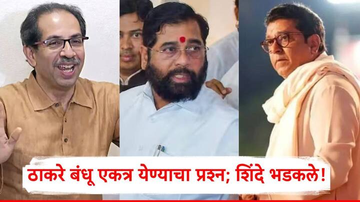 Eknath Shinde On Raj Thackeray And Uddhav Thackeray: राज ठाकरे आणि उद्धव ठाकरे एकत्र येण्याच्या प्रश्नावर उपमुख्यमंत्री एकनाथ शिंदे चांगलेच चिडल्याचे दिसून आले.