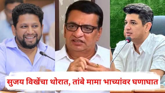 Sujay Vikhe on Balasaheb Thorat Satyajeet Tambe: संगमनेर नगरपालिकेच्या शिवसेनेच्या नगराध्यक्ष पदाच्या उमेदवार सुवर्णा खताळ (Suvarna Khatal) यांच्या प्रचारासाठी उपमुख्यमंत्री एकनाथ शिंदे (Eknath Shinde) यांची संगमनेरमध्ये (Sangamner) जाहीर सभा पार पडली. या सभेतून भाजपचे माजी खासदार सुजय विखे पाटील (Sujay Vikhe Patil) यांनी काँग्रेसचे ज्येष्ठ नेते बाळासाहेब थोरात (Balasaheb Thorat) आणि त्यांचे भाचे आमदार सत्यजित तांबे (Satyajeet Tambe) यांच्यावर जोरदार टीका केली आहे.
