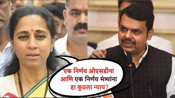काल मुख्यमंत्र्यांनी अतिशय चांगला निर्णय घेतला ते काय म्हणाले जे ओएसडी किंवा पी एस वर आरोप झाला असेल त्याला आम्ही ठेवणार नाही, त्याचा मी स्वागत करते, मात्र एक निर्णय ओएसडी ना आणि एक निर्णय मंत्र्यांना हा कुठला न्याय?ओएसडी आणि पीए ठेवताना ज्याच्यावर आरोप झालेल कोणावर केस असेल, त्याला मी मंत्रालयात ठेवणार नाही असं म्हणत आहात, तर मग मंत्र्यांसाठी दुसरा कायदा?असा सवालही सुळे यांनी केला . तुमचं सरकार खरच भ्रष्टाचारमुक्त असेल तर वाशिंग मशीन सिलेक्टिव्ह चालणार नाही .सुरेश धस यांचे स्टेटमेंट मी ऐकलं होतं आता ते मला खरं वाटतंय,मी एकटी आरोप करत नाही सगळे करत आहेत.. महाराष्ट्रमध्ये अनेक मंत्र्यावरती असे आरोप होत आहेत हे दुर्दैव आहे. ज्यांना दोन वर्षे शिक्षा झाली आहे ती कोर्टाने केली आलेली आहे आम्ही नाही केली. असेही सुप्रिया सुळे म्हणाल्या .