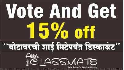 पुणे : महापालिका निवडणुकीसाठी पुण्याच्या कर्वेनगरमधील हॉटेल क्लासमेटनं मतदारांसाठी आकर्षक योजना आणली आहे. या हॉटेलनं मतदान करणाऱ्या पुणेकरांसाठी जेवणामध्ये तब्बल 15 टक्के सूट देण्याचं जाहीर केलं आहे. ही सूट मिळवण्यासाठी फक्त आपल्या बोटावर लावलेली शाई दाखवावी लागणार आहे. पुणे महापालिकेतील 162 जागांसाठी 21 फेब्रुवारीला मतदान होणार आहे. पुण्यातील मतदानाची टक्केवारी वाढावी, तसंच लोकांनी बाहेरगावी न जाता पुण्यातच आपला प्लॅन करावा, यासाठी मतदानादिवशी जेवणाच्या बिलात 15 टक्के सूट जाहीर केली आहे. फक्त मतदानादिवशीच नाही, तर बोटावरील मतदानाची शाई निघेपर्यंत ही सूट देण्यात येणार आहे. पुण्यातील कर्वेनगर चौकातील या हॉटेलमध्ये अस्सल वऱ्हाडी पदार्थ मिळतात. ग्राहकांनी या सवलतीचा लाभ उठवावा, असं आवाहन हॉटेलचे मालक मधुकरराव कुडकेलवार यांनी केलं आहे. तसंच गैरसोय टाळण्यासाठी ॲडव्हांस ऑर्डर दिल्यास आणखी चांगली सर्विस देता येईल, असंही त्यांनी सांगितलं आहे.