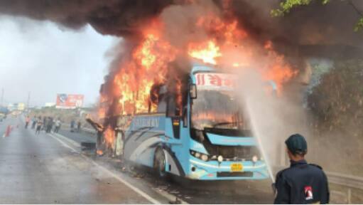 सकाळी साडेसात वाजता आढेगावच्या हद्दीत साडे सातच्या दरम्यान खासगी बसचा टायर फुटला. त्यामुळे बस जागेवरच पेटली. त्यानंतर शॉर्ट सर्किट झाल्यानं संपूर्ण बसने पेट घेतला. या बसमध्ये 36 प्रवासी होते. टायर फुटल्याची माहिती मिळताच बस चालकाने प्रसंगावधान दाखवलं आणि सगळ्या प्रवाशांना बसमधून उतवरून दिलं. चालकाने प्रसंगावधान दाखवल्याने सगळे प्रवासी सुखरुप बचावले. आय आर बी पेट्रोलिंग, देवदूत यंत्रणा, डेल्टा फोर्स, वडगाव वाहतूक पोलीस यंत्रणा यांच्या संयुक्त प्रयत्नाने आग विझवली गेली.