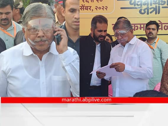 Chandrakant patil : शाईफेक प्रकरणानंतर पुण्याचे पालकमंत्री चंद्रकांत पाटील यांनी आता सावध भूमिका घेतली आहे. पुन्हा शाईफेकीची धमकी आल्यानं चंद्रकांत पाटलांनी सार्वजनिक कार्यक्रमात सहभागी होताना फेस शिल्डचा वापर केला आहे. फेस शिल्ड लावत ते पवनाथडी जत्रेच्या उद्घाटनाला हजर झाले. सकाळीच त्यांना सोशल मीडियावरुन पुन्हा एकदा शाईफेकीची धमकी देण्यात आली होती. त्यामुळे खबरदारी म्हणून त्यांनी फेस शिल्डचा वापर केला आहे. त्यांच्या या फेस शिल्डची सध्या चांगलीच चर्चा रंगली आहे.