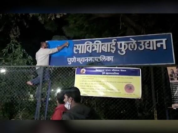 पुणे : पुणे महापालिकेकडून एका उद्यानाला 1991 साली सावित्रीबाई फुलेंचं नाव देण्यात आलं. पण उद्यानाच्या फलकावर सावित्रीबाईंचा उल्लेख साध्वी सावित्रीबाई फुले असा असल्यानं वाद निर्माण झालाय. 30 वर्षांनंतर हा वाद निर्माण झाला आहे. पुणे महापालिकेकडून सावित्रीबाई फुलेंना हिंदुत्त्ववादी विशेषणं लावण्याचा प्रयत्न होत असल्याचा आरोप आता समता दलानं केला आहे. समता दलाच्या कार्यकर्त्यांनी सावित्रीबाईंच्या नावाच्या आधी असलेल्या साध्वी हा उल्लेख झाकून टाकला आहे. पुण्यातल्या ढोले पाटील क्षेत्रीय कार्यालयाजवळ हे उद्यान आहे.