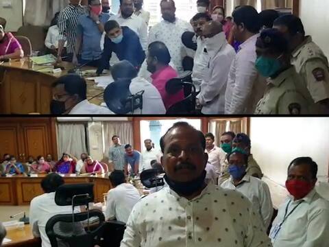 काही ठेकेदारांनी बनावट कागदपत्रे वापरून महापालिकेकडून कामं मिळविल्याचं समोर आलंय. तर अन्य 100 ठेकेदारांनी चालू वर्षात असा कारनामा करत शेकडो कोटींची काम मिळवली आहेत. हे ठेकेदार कोण? कोणाच्या सांगण्यावरून हा प्रताप सुरुये? आणि कोणत्या अधिकाऱ्यांची याला साथ आहे? याचा खुलासा आयुक्तांनी करावा आणि तसे आदेश अध्यक्ष लोंढे यांनी द्यावेत, अशी मागणी करत भाजपच्या जगताप समर्थकांनी भाजपच्याच अध्यक्षांना घेराव घातला. तरी ही अध्यक्ष लोंढे यांनी आयुक्तांना खुलासा करण्याचे आदेश दिले नाहीत. मग नंतर फाईली भिरकवण्यात आल्या. तसेच माईकसह काही वस्तूंची तोडफोड झाल्याची ही चर्चा आहे. हे घडत असतानाच सभागृहाचे दार उघडून अध्यक्ष लोंढे यांनी भाजपच्या सदस्यांना बाहेर हकलले असा आरोप आमदार जगताप समर्थक सदस्य अंबरनाथ कांबळे यांनी केला.