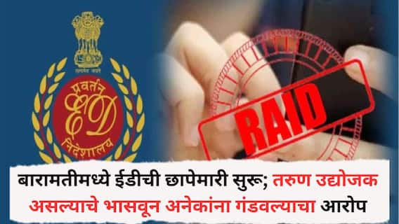 बारामती: बारामतीमध्ये आज सकाळपासून ईडीची छापेमारी (ED raid) सुरू असल्याची माहिती समोर आली आहे. आनंद सतीश लोखंडे आणि विद्या सतीश लोखंडे यांच्या घरावर ईडीची (ED raid) धाडी पडल्याची माहिती आहे. जळोची या लोखंडेंच्या मूळ गावात ईडीची छापेमारी सुरू आहे. पुणे, मुंबईच्या दूध डेअरीवाल्यांना १० कोटींना गंडवल्याच्या प्रकरणात ईडीने छापेमारी (ED raid) केली आहे. मंत्रालयातल्या काही कर्मचाऱ्यांनाही गंडवल्याचा आरोप करण्यात आला आहे.(ED raid)
