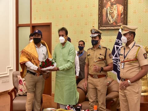 पिंपरी-चिंचवड: गृहमंत्री अनिल देशमुखांनी पिंपरी चिंचवडचे वाहतूक पोलीस आबासाहेब सावंतांच्या कार्याचे कौतुक केले. कर्तव्यावर असताना एका चालकाने सावंतांना ठोकर दिली, तेव्हा ते बोनेटवर पडले. अशा परिस्थितीत त्या चालकाने एक किलोमीटर अंतर सुसाट गाडी पळवली होती. सावंतांनी लावलेली जीवाची बाजी आणि प्रत्यक्षदर्शींचे प्रसंगावधान यामुळे चालकाला बेड्या ठोकण्यात यश आले होते. याचा थरार कॅमेऱ्यातून सर्वांसमोर आला. त्यानंतर आज गृहमंत्री देशमुखांनी सावंतांना मुंबई बोलवून त्यांचं कौतुक केलं. यावेळी पिंपरी चिंचवड पोलीस आयुक्त कृष्ण प्रकाश ही उपस्थित होते.