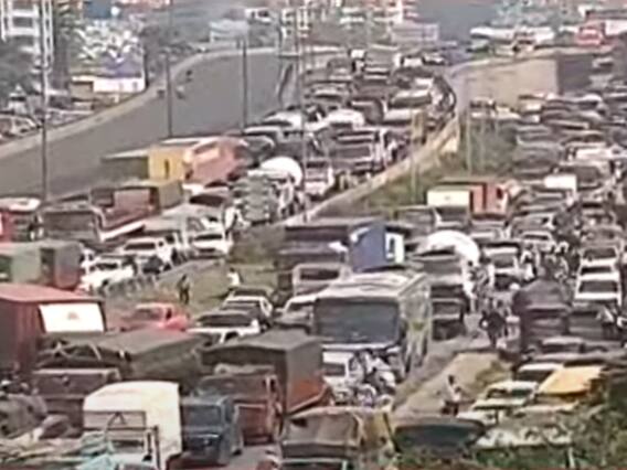 पुणे : मराठा आंदोलनाची धग आता पुण्यापर्यंत येऊन पोहचली आहे. आंदोलकांनी (Maratha Reservation Protest) पुणे-बेंगलोर राष्ट्रीय महामार्गावर नवले पुलाजवळ रस्ता अडवला. त्यामुळे मोठ्या प्रमाणात वाहतूक विस्कळीत झाली आहे. पाच ते सात किलोमीटरपर्यंत दोन्ही बाजूंनी वाहनांच्या रांगाच रांगा लागल्या आहे. महत्वाचं म्हणजे यात रुग्णवाहिका आणि स्कूलबसेसदेखील अडकल्या आहे. मागील दोन तासांपासून विद्यार्थी आणि रुग्ण तातकळत आहे. शिवाय अनेक नागरिकदेखील वाहतूक कोंडीत अडकले आहेत.