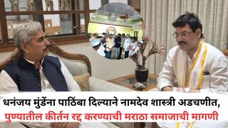 पुणे: बीड जिल्ह्यातील मस्साजोग गावचे सरपंच संतोष देशमुख अपहरण आणि हत्या प्रकरणावरून मंत्री धनंजय मुंडे (Dhananjay Munde) यांची पाठराखण करणाऱ्या नामदेव शास्त्रींच्या कार्यक्रमाला विरोध होताना दिसत आहे. पुण्याच्या देहूतील भंडारा डोंगरावर नामदेव शास्त्री महाराजांचे कीर्तन येत्या 7 फेब्रुवारी ला होणार आहे. मात्र हे कीर्तन रद्द करावे, अशी मागणी अखिल मराठा समाजाने भंडारा डोंगर सप्ताह समितीकडे करण्यात आली आहे. भंडारा डोंगर मंदिर समिती याबाबत काय निर्णय घेते याकडे सर्वांचं लक्ष आहे. या मागणीला दिवंगत सरपंच संतोष देशमुख हत्या प्रकरणाची किनार आहे. भंडारा डोंगरावर अखंड हरिनाम सप्ताह सुरु आहे, या सप्ताहात शास्त्री महाराजांच्या कीर्तन सोहळ्याचे आयोजन करण्यात आलं आहे. बीड मधील परिस्थिती पाहता आता भंडारा डोंगर सप्ताह समिती काय निर्णय घेते, याकडे सर्वांचं लक्ष लागून आहे. संस्थान उद्यापर्यंत याबाबतची भूमिका स्पष्ट करणार आहे. दुसरीकडे मराठा समाजाने मात्र हा कीर्तन सोहळा संस्थानने रद्द केल्याचा दावा केला आहे.