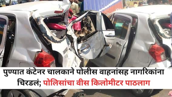 पुणे: पुण्यातील (Pune) चाकण-शिक्रापूर महामार्गावर कंटेनर चालकाने हैदोस घातला. तब्बल वीस किलोमीटर पोलिसांनी या कंटेनर चालकाचा पाठलाग केला. या दरम्यान अनेक वाहनाला कंटेनर चालकाने धडक दिली. हा सगळा थरार सीसीटीव्ही कॅमेऱ्यात (CCTV) देखील कैद झाला आहे. यात चौघे जखमी झाले आहेत, सुदैवानं यात कोणतीही जीवितहानी झालेली नाही. संतापलेल्या नागरिकांनी चालकाला पकडून बेदम चोप ही दिला आहे.(Pune Accident News)