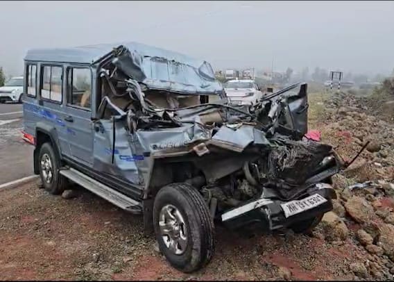 नाशिकहून भोसरीच्या दिशेने जाणाऱ्या जीपने ट्रकला धडक दिल्याने पहाटे भीषण अपघात झाला. ही धडक इतकी भीषण होती की, जीपचा पुढचा भाग चिरडला गेला आहे. समोरचा ट्रक जीप चालकाला धुक्यामुळे दिसला नाही. त्यामुळे हा अपघात झाल्याचा अंदाज पोलिसांनी वर्तवला आहे.