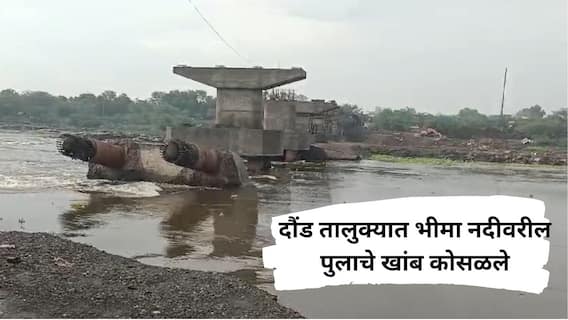 पुणे : दौंड (Daund) तालुक्यात काल रात्री नव्याने सुरु असलेल्या भीमा नदीवरील (Bhima River Bridge) पुलाचे खांब कोसळले आहेत. दौंड आणि नगर (Daund - Ahmednagar) जिल्ह्याला जोडणाऱ्या पुलाचे काम चालू होते. या पुलाचे खांब कोसळले आहेत.सुदैवाने या घटनेत कोणतीही जीवितहानी झाली नसली तरी पुलाच्या कामावर प्रश्नचिन्ह उपस्थित होत आहे. दौंड आणि नगर जिल्ह्याला जोडणाऱ्या दौंड गार गावादरम्यान पुलाचं काम सुरू होतं. 20 कोटी रुपये खर्चून हे काम करण्यात येत होतं मात्र पूल उभारण्याचं काम सुरू असताना पुलाचे खांब कोसळले आहेत.