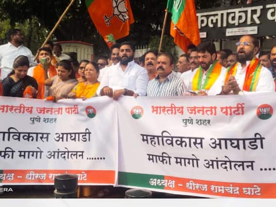 पुणे : राज्यातील कंत्राटी भारती ही महाविकस आघाडीचं (Job Recruitment) पाप असल्याचे सांगत भारतीय जनता पक्षाच्यावतीने 'महाविकास आघाडी माफी मांगो' आंदोलन करण्यात आले. कंत्राटी भारतीबाबत उपमुख्यमंत्री देवेंद्र फडणवीस यांनी वस्तुस्थिती समोर आणली आहे. सध्याच्या सरकारने त्या बाबतचा जीआर मागे घेतला असला तरी माहविकास आघाडी सरकारच्या काळात मोठ्या प्रमाणावर कंत्राटी भरती झाल्याचं फडणवीस यांनी म्हटलं आहे. या पार्श्वभूमीवर भाजपच्या कार्यकर्त्यांनी महविकास आघाडी विरोधात आंदोलन केलं. पुण्यातील गुडलक चौकात कार्यकर्त्यांनी घोषणाबाजी करत निदर्शने केली.