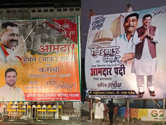 Pune Bypoll Election : पुण्यातील कसबा मतदारसंघाची पोटनिडणूक जाहीर झाल्यानंतर पहिल्या दिवसापासून बॅनरबाजीमुळे चर्चेत आहे. कसब्यात लावण्यात आलेल्या बॅनरची चर्चा राज्यभर रंगली. त्यानंतर आता प्रचार आणि मतदानानंतर थेट विजयी आणि अभिनंदनाचे बॅनर्स लावण्यात आले आहेत. मात्र काही वेळानंतर ते बॅनर हटवण्यातही आले. मतदानानंतर दुसऱ्याच दिवशी या बॅनरबाजीमुळे शहरात चांगलीच चर्चा रंगली.
