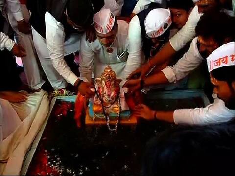 पुण्यात दगडूशेठ हलवाई गणपतीचं विसर्जन