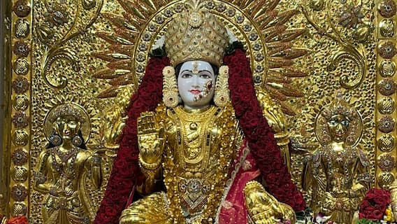 पुणे: विजयादशमीनिमित्त पुण्यातील सारसबाग परिसरातील श्री महालक्ष्मी मंदिरातील देवीच्या मूर्तीला तब्बल 17 किलो सोन्याची साडी परिधान करण्यात आली आहे. देवीला ही साडी परिधान करण्याची परंपरा गेल्या अनेक वर्षांपासून आहे. देवीला परिधान केलेली ही सोन्याची साडी दक्षिण भारतातील कारागिरांनी तयार केलेली आहे. 21 वर्षांपूर्वी देवीच्या मुर्तीसाठी ही सोन्याची साडी तयार करण्यात आली होती. अनेक कारागिरांनी जवळपास सहा महिने ही साडी तयार करण्याचे काम केले होते. त्यानंतर ही साडी पूर्ण झाली आहे. (Pune Mahalakshmi Devi Wears 17 Kg Gold Saree for Vijaya Dasami Dusshera)