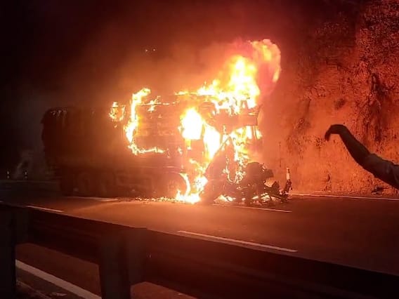 Pune Navale Bridge Accident : पुण्यातील नवले पुलाजवळ पुन्हा एकदा जीवघेणा अपघात झाला आहे. कंटेनरची धडक झाल्याने ट्रकने पेट घेतला आणि त्याला आग लागली. या आगीत ट्रकच्या केबीनमध्ये बसून प्रवास करणारे चारजण होरपळून मृत्यूमुखी पडलेत. तर इतर जखमी झालेत. ही आग विझवण्यात अग्नीशमन दलाला यश आलं आहे.