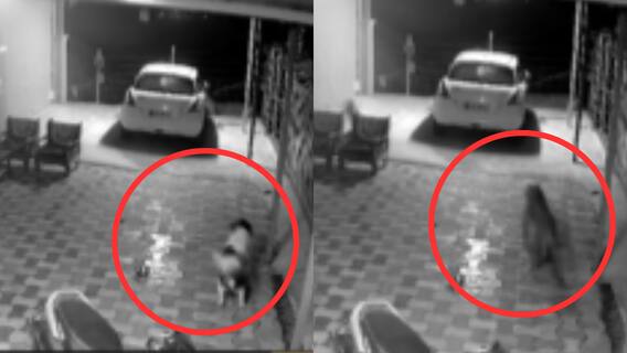 पुणे : पुणे जिल्ह्यात अनेक परिसरात सध्या बिबट्यांचा वावर वाढत चालला. आतापर्यंत (Leopard attack) बिबट्याने शिकार करुन (Dog)जनावरं फस्त केल्याचं पाहायला मिळालंय. अनेकांच्या पाळीव कुत्र्यांवरही हल्ला केल्याच्या घटना आतापर्यंत अनेकदा समोर आल्या आहेत. मात्र पिंपरी-चिंचवडच्या मुळशीमधील कासारसाईमध्ये एका घराच्या अंगणात बिबट्या शिरला. यावेळी त्या घराच्या अंगणआत बसलेल्या पाळीव कुत्र्याने बिबट्याला पळवून लावलं. ही संपूर्ण घटना सीसीटीव्ही कॅमेऱ्यात कैद झाली आहे.