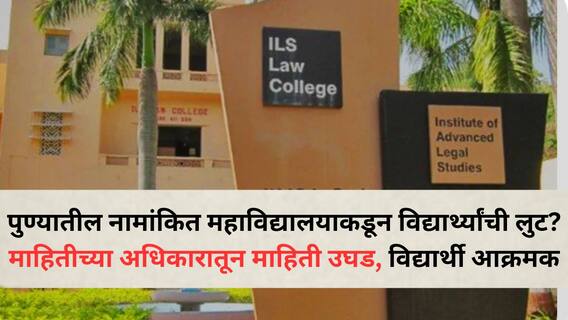 पुणे: पुण्यातील नामांकित आयएसएस लॉ (ILS law) महाविद्यालयाकडून अतिरिक्त फी उकळली जात आहे, असा आरोप विद्यार्थ्यांकडून केला जात आहे. महाविद्यालयाच्या विरोधात विद्यार्थ्यांकडून आंदोलन केलं जात आहे. महाविद्यालयातील विद्यार्थ्यांनी माहितीच्या अधिकारातून माहिती मागवली होती, त्या माध्यमातून धक्कादायक माहिती समोर आली होती. चार ते पाच हजार फी ऐवजी 41 ते 42 हजार रुपये फी घेतली जात आहे, त्यामुळे विद्यार्थी आक्रमक झाले आहेत. महाविद्यालयातील विद्यार्थ्यांनी आंदोलनात सहभाग घेतला तर कायदेशीर कारवाई करू, अशा नोटीस महाविद्यालयात लावून विद्यार्थ्यांवर दबाव टाकण्याचा प्रशासनाचा प्रयत्न असल्याचं विद्यार्थ्यांचं म्हणण आहे.