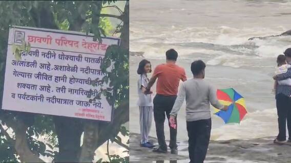 Pune News: पुणे जिल्ह्यातील (Pune News) मावळ आणि मुळशी तालुक्यात पर्यटनाला बंदी घालण्यात आली आहे. मात्र अतिउत्साही पर्यटकांनी पर्यटनस्थळी हजेरी लावल्याचं दृश्य दिसून येत आहे. प्रशासनाच्या सुचनांना केराची टोपली दाखवत, हे पर्यटक स्वतःच्या जीवाशी खेळताना दिसून येत आहेत. गेली चार दिवस पावसाने पुणे जिल्ह्याला (Pune Rain Update) झोडपून काढलं. अशात परिस्थिती कधीही हाताबाहेर जाऊ शकते, हे पाहून मावळ आणि मुळशी तालुक्यात 29 जुलैपर्यंत पर्यटनाला बंदी घालण्यात आली आहे. मात्र हा बंदीचा आदेश झुगारून, आज शनिवारच्या सुट्टीचा मुहूर्त साधत अतिउत्साही पर्यटकांनी कुंडमळा इथं हजेरी लावली आहे.