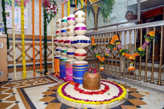'तांदळापासून बनवलेल्या आणि एका लिंबावरती उभ्या असणाऱ्या पिंडी'