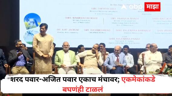 बारामती: राष्ट्रवादी काँग्रेस शरदचंद्र पवार पक्षाचे अध्यक्ष शरद पवार (Sharad Pawar) आणि उपमुख्यमंत्री अजित पवार (Ajit Pawar) बारामतीत एकाच मंचावरती आले असल्यानं राजकीय वर्तुळात चांगलीच चर्चा सुरू झाली आहे. बारामतीतील कृषी विज्ञान केंद्राच्या कृषीक कृषी प्रदर्शनाच्या निमित्ताने दोघं एकाच मंचावर आले आहेत. या निमित्त बारामतीत निवडणुकांनंतर पहिल्यांदाच शरद पवार आणि अजित पवार एकाच मंचावर आले आहेत. त्यामुळं सर्व राजकीय विश्वाचं लक्ष्य या कार्यक्रमाकडे लागलं आहे. पवार काका-पुतणे एकाच मंचावर आले, मात्र अजितदादा, शरद पवार आणि सुप्रिया सुळे यांनी एकमेकांकडे बघितले देखील नाही. शिवाय एकमेकांना नमस्कार करणं देखील टाळल्याचं दिसून आलं.