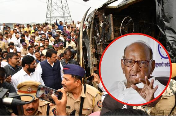 Sharad Pawar on Buldhana Bus Accident : बुलढाण्यातील भीषण अपघातानंतर राष्ट्रवादीचे सर्वेसर्वा शरद पवार (Sharad Pawar) यांनी उपमुख्यमंत्री देवेंद्र फडणवीस (Devendra Fadnavis) यांच्यावर निशाणा साधला आहे. 'समृद्धी महामार्गावर (Samruddhi Highway) जो अपघातात मृत्यू पावतो तो 'देवेंद्र'वासी होतो असे लोक सांगतात', असं म्हणत शरद पवारांनी फडणवीसांवर निशाणा साधला आहे. अपघातावर प्रतिक्रिया देताना पवार म्हणाले की, ''समृद्धी महामार्गावर अनेक अपघात झालेत. हे अपघात सातत्याने होत आहेत. हे चित्र गेले काही महिने बघायला मिळत आहे. मी त्या रस्त्याने गेलो होतो. तिथे लोकांना त्यांचा अनुभव विचारला. लोक म्हणाले सातत्याने अपघात बघायला मिळतात. जो अपघातात मृत्यू पावतो तो देवेंद्र वासी होतो असे लोक सांगतात'', अशा शब्दात शरद पवार यांनी बुलढाण्यातील अपघातावरुन उपमुख्यमंत्री देवेंद्र फडणवीसांवर निशाणा साधला आहे. ते पुण्यातील पत्रकार परिषदेत बोलत होते.